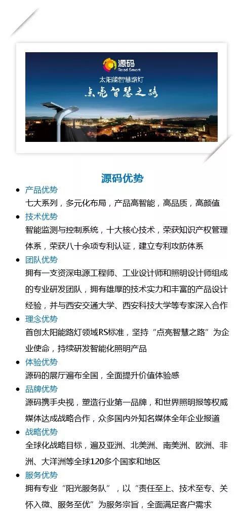 源碼是全球領(lǐng)先的太陽(yáng)能智慧路燈產(chǎn)品提供商,是一家集研發(fā)、設(shè)計(jì)、生產(chǎn)和銷售于一體的跨國(guó)照明科技企業(yè),國(guó)家高新技術(shù)企業(yè)。