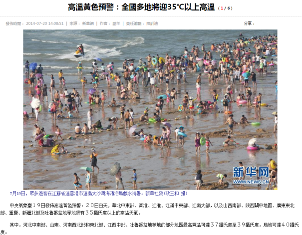 八月驕陽似火,進入三伏天,全國各地紛紛開啟了鐵板烤模式,多地氣溫高達35℃,南方地區(qū)出現(xiàn)大范圍持續(xù)高溫天氣。各地關(guān)于高溫的報道層出不窮,“避暑游每天10萬人入滇躲陰涼”,“全國多地將迎35℃高溫”,“非洲小哥在中國被曬到中暑”……中央氣象局提醒,盡量避免午后高溫時段的戶外活動。